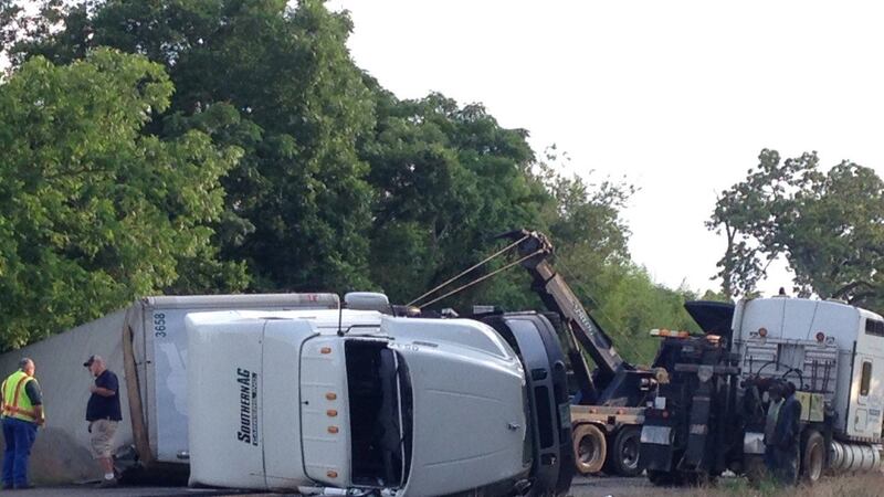 SHELLMAN, GA (WALB) - Traffic is being detoured on Highway 82 near Calhoun Street where a tractor trailer rolled over Saturday evening around 5:30.
