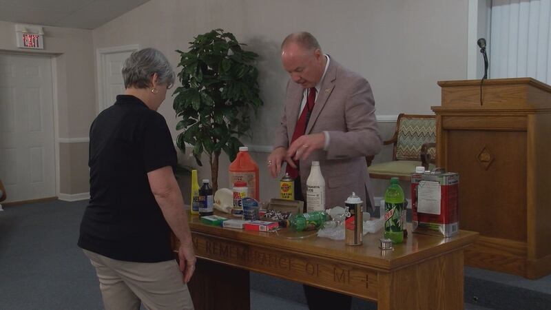 He had a table of drug paraphernalia to show residents how easily drugs can be made in the home.