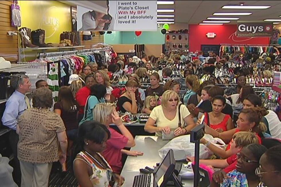 Shoppers rushed into Plato's Closet as the doors opened at 10:00 quickly turning the sales floor into a sea of shoppers all searching for the same thing, a bargain.